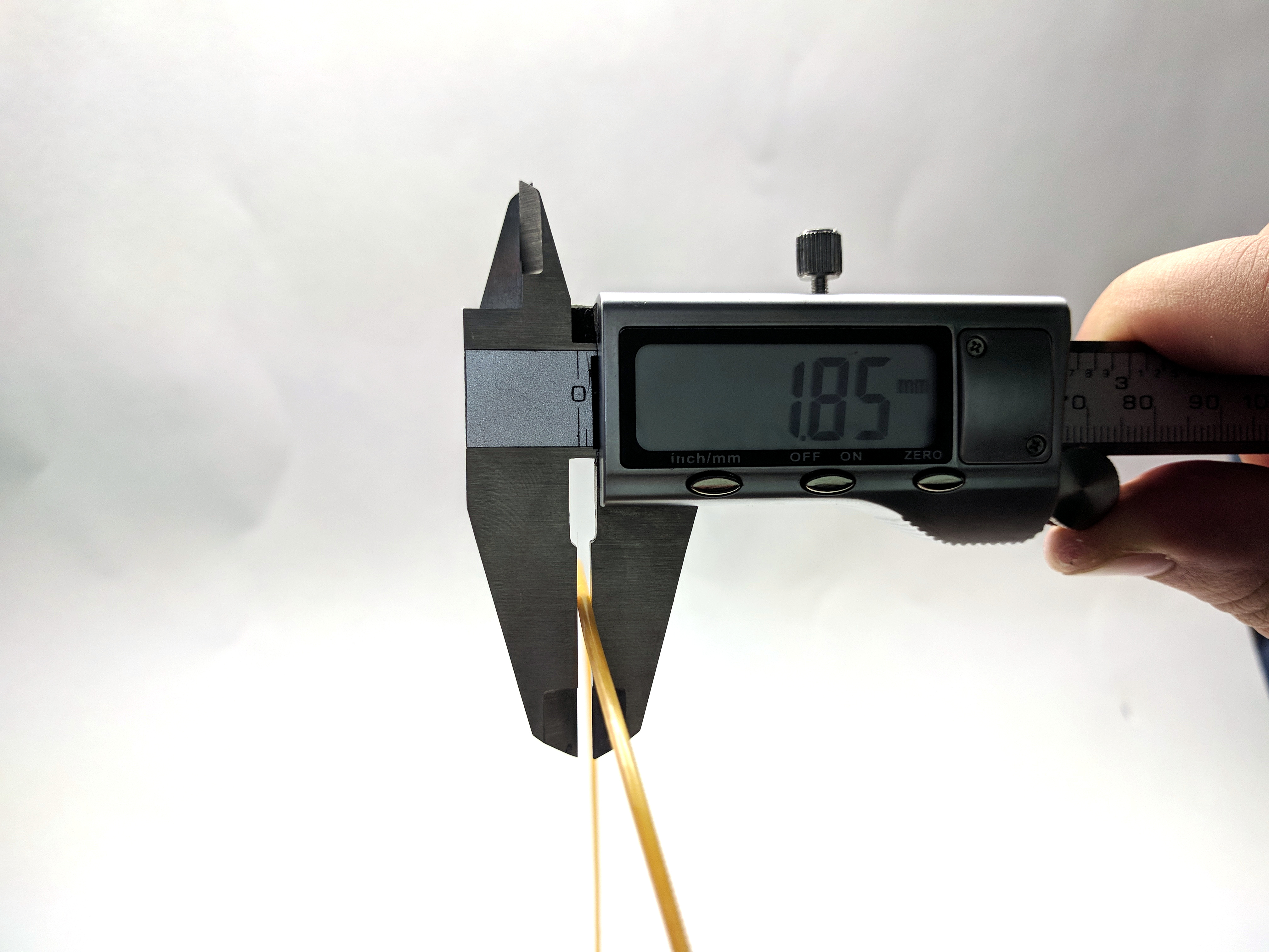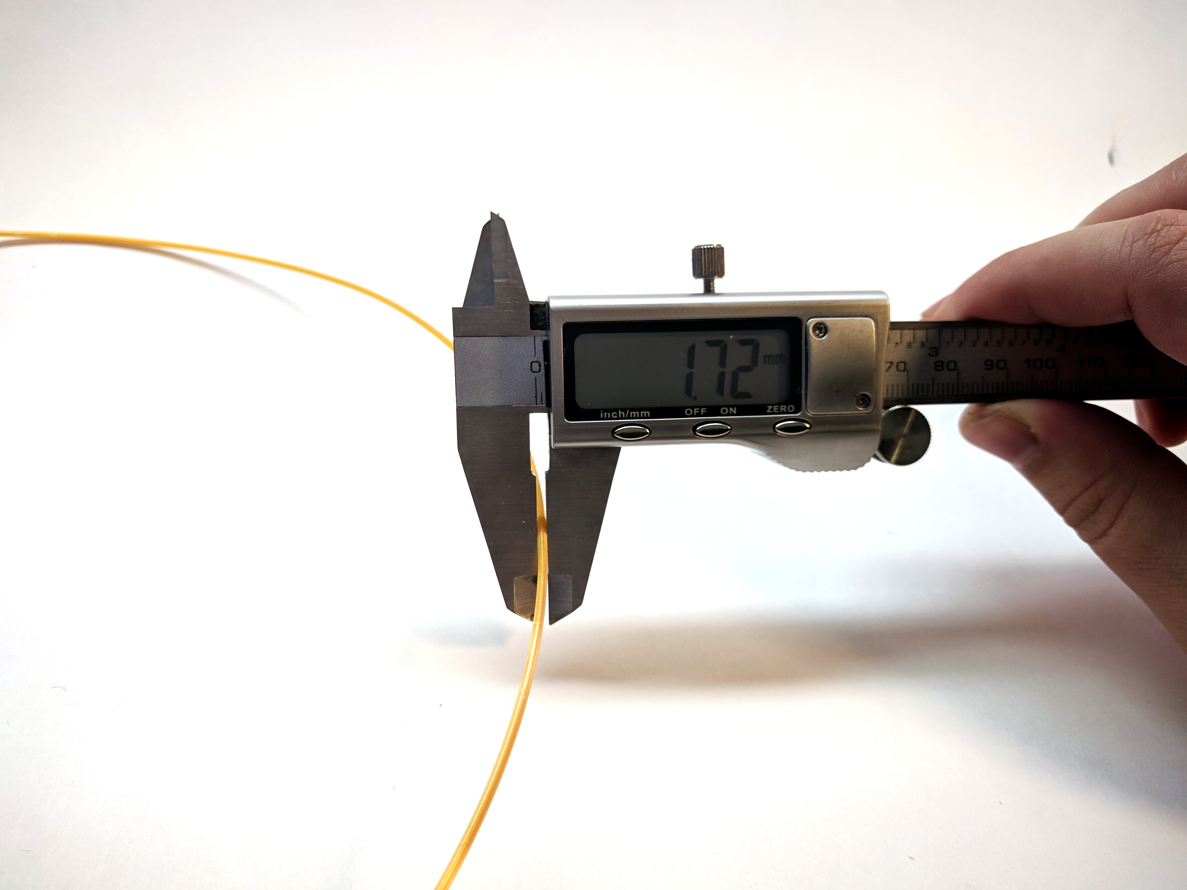 This is the tricky part. Many filaments will appear ok at first. The trouble is, they have a high degree of eccentricity, that is, they are out-of-round. To detect this, what you must do is take one measurement, then rotate the filament 90 degrees and take another measurement.